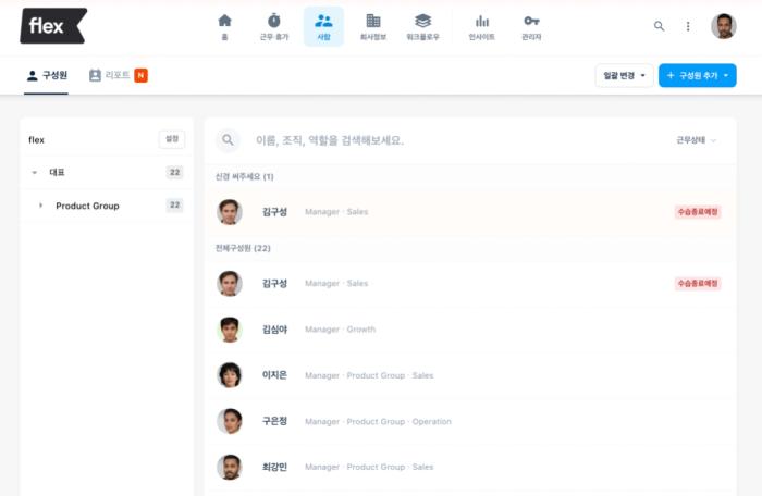 flex를 활용해 구성원의 수습 기간을 비롯한 근태, 급여, 계약 등 인사업무 전반을 쉽게, 직관적으로 운영해보세요. 어렵지 않습니다. flex를 직접 체험해보셔도 되고, 플렉스팀 컨설턴트의 상담을 받아보셔도 돼요. 지금 스크롤을 내려 아래 링크에서 flex 무료 체험을 신청해주세요.