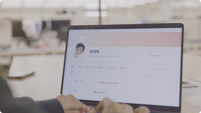 구성원 정보를 한데 모으고 잘 정리하기 위한 방법을 고민했어요. 구성원에 대한 모든 정보를 한눈에 볼 수 있는 방법이 뭐가 있을까? 그 고민 끝에 새로운 구성원 프로필을 만들기 시작했습니다. flex에서 흩어져 있는 구성원 정보를 모아 프로필에 담는 작업을 진행했고, 구성원에 대한 모든 정보를 한눈에 쉽게 파악할 수 있는 프로필이 완성되었습니다.