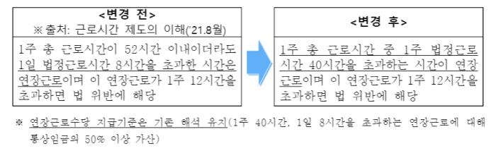 연장근로 한도 위반 기준 변경 보도 자료 (출처: 고용노동부)