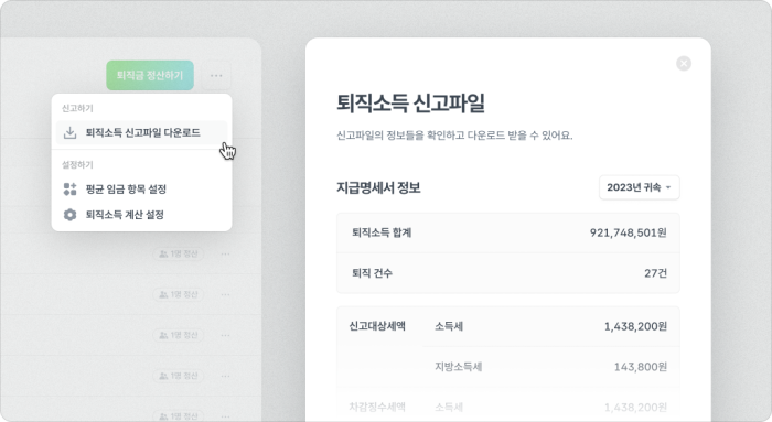 매년 2월 국세청에 신고해야 하는 퇴직금 정산 결과, 이제 flex에서 신고파일을 다운로드하여 빠르게 진행하실 수 있어요.
