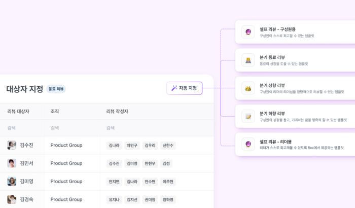 리뷰 작성자와 대상자를 정하는 것도 복잡한 오퍼레이션 중 하나였습니다. 일일이 리뷰 권한을 부여하는 작업도 비효율적인데 잘못 부여되면 노 리스크가 있어 다른 팀원이 볼 수 있는 문제가 있었죠. 리뷰 진행을 엉뚱한 사람이 하는 것은 물론, 데이터 관리도 공백이 자주 발생하곤 했습니다.