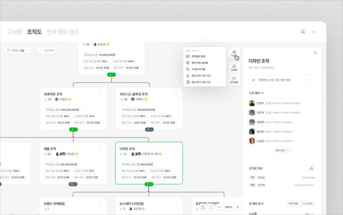 - 이러한 데이터를 바탕으로 조직 개편 전, 개편 예정인 조직의 트렌드와 직무, 직급 분포를 미리 살펴볼 수 있어요. 조직 예약 기능 관련된 자세한 사항은 아래 가이드를 클릭해 확인해주세요!