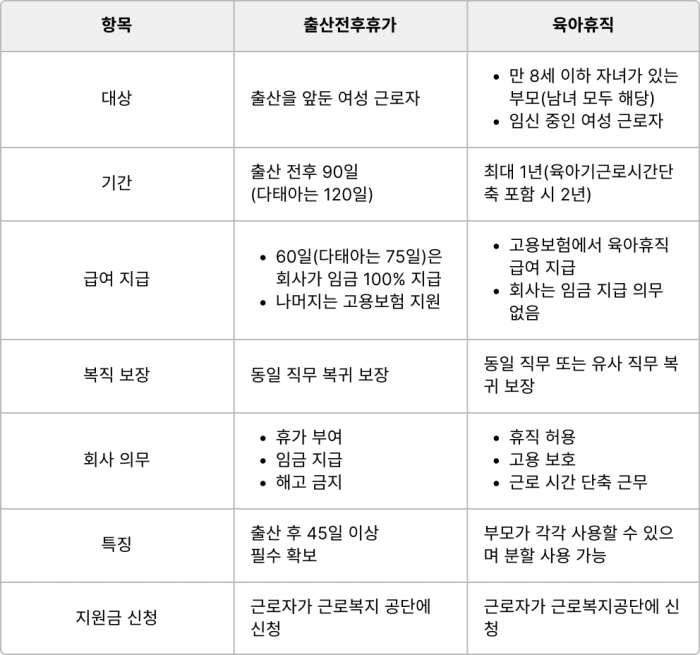 ✅ 출산전후휴가 신청 시, 회사의 법적 의무