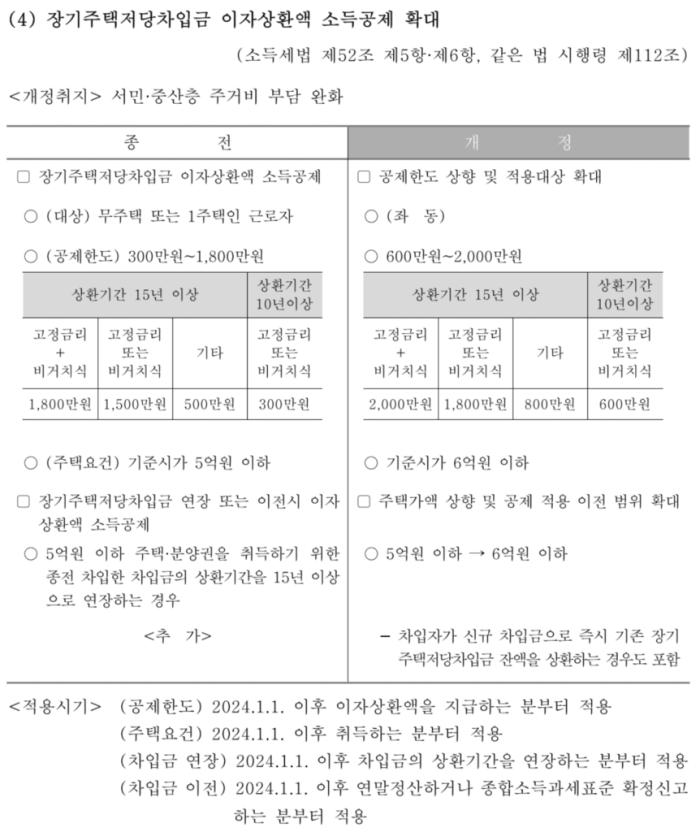 3. 장기 주택저당 차입금 이자상환액 소득공제 확대