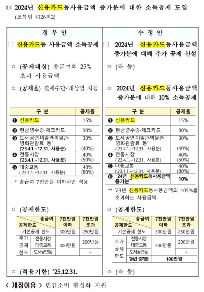 - 2024년 신용카드등사용금액 증가분에 대해 10% 소득공제