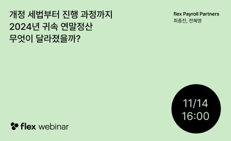 4분기의 마지막, 13월의 연말정산을 준비하는 분들을 위해 플렉스팀이 올해도 어김없이 연말정산 웨비나를 준비했습니다.