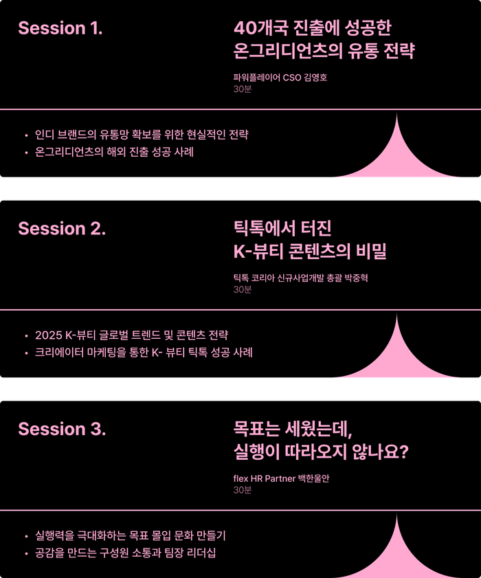 워밍업 세션(인터뷰 콘텐츠)과 실전 세션(실무 중심 강연)을 통해, 연사들이 글로벌 현장에서 직접 얻은 생생한 인사이트를 전해드립니다.