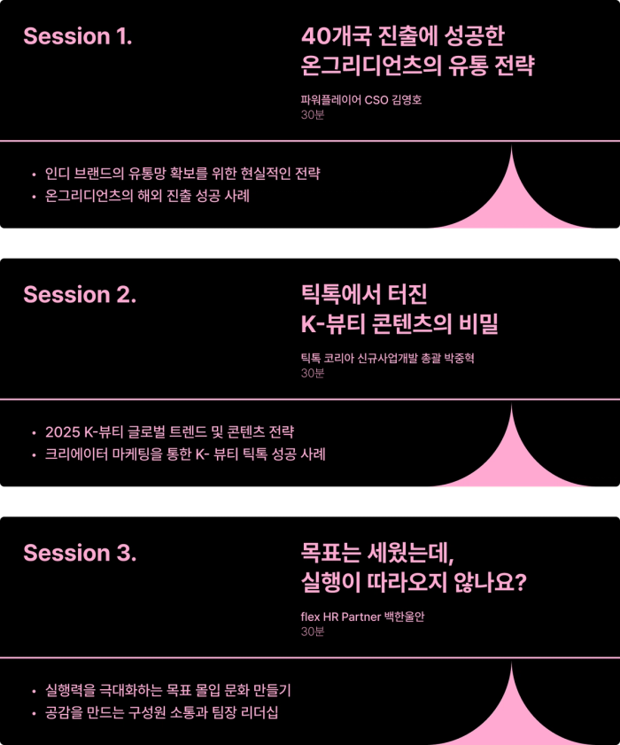 워밍업 세션(인터뷰 콘텐츠)과 실전 세션(실무 중심 강연)을 통해, 연사들이 글로벌 현장에서 직접 얻은 생생한 인사이트를 전해드립니다.