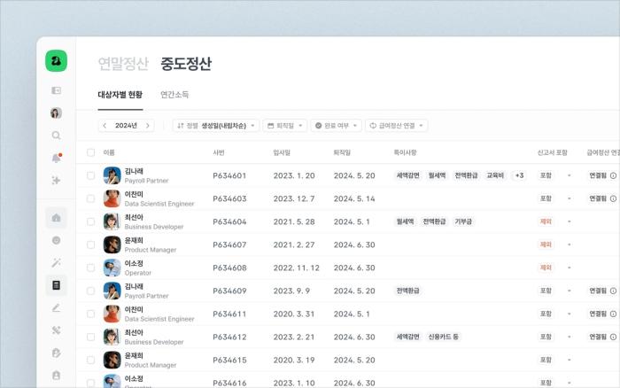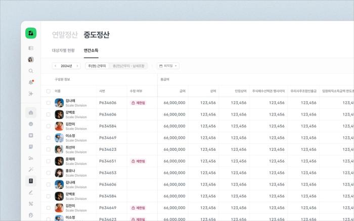 - 중도정산 내역을 귀속 연도별로 조회할 수 있고, 다양한 필터를 통해 원하는 정산만 쉽게 찾을 수 있어요.