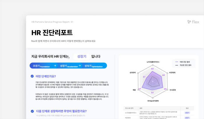 - 진단 결과를 정리한 맞춤형 HR 리포트 무료 제공