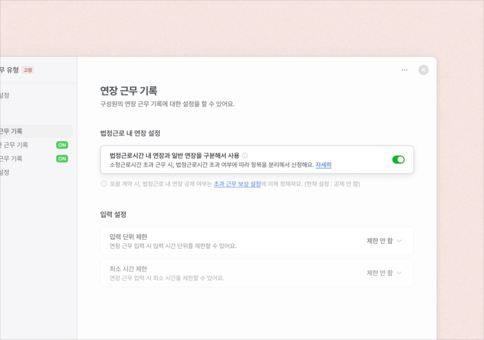 새로운 기능 : '법정근로시간 내 연장' 항목 사용 여부 설정