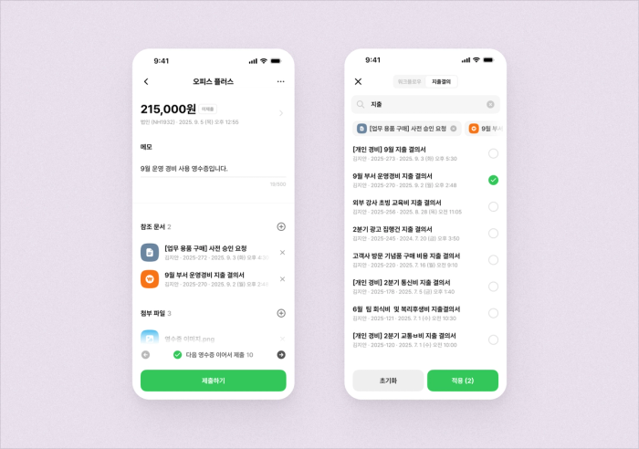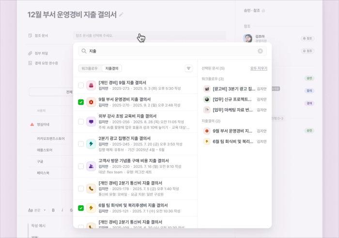 이제 다른 지출결의 문서를 참조 문서로 첨부할 수 있고, 필요한 문서를 훨씬 빠르고 쉽게 찾을 수 있습니다.