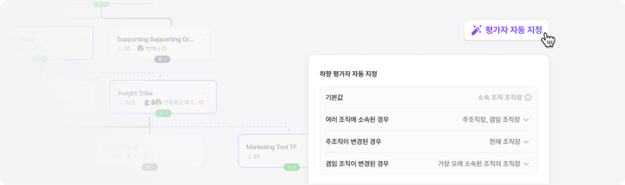 flex 평가는 조직 정보를 바탕으로 평가자를 자동 추천합니다.