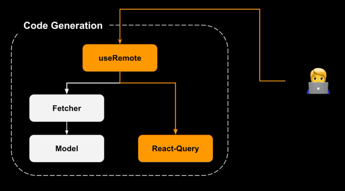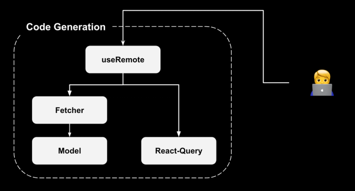 서비스 규모가 커지며 관리해야 할 API가 5,000개를 넘어서자, 쿼리 키 생성이나 페치 함수 호출 같은 반복 작업을 줄여야 할 필요성이 생겼습니다. 이를 해결하기 위해 React Query 훅까지 한 번에 생성해 주는 useRemote를 도입했습니다.