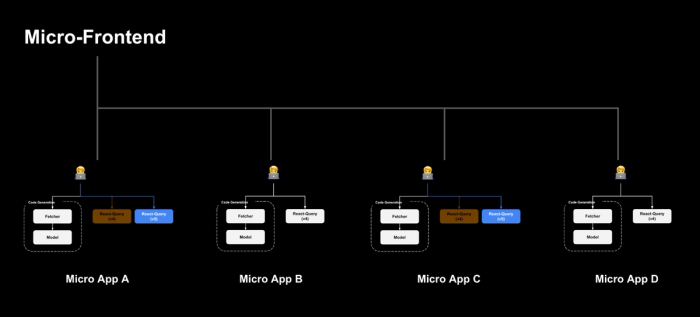 이로써 코드 생성 단계는 라이브러리 버전에 영향받지 않게 되었고, 위 그림처럼 각 마이크로 앱은 상황에 맞는 React Query 버전을 독립적으로 선택할 수 있는 환경이 마련되었습니다.