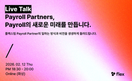 성과관리 웨비나 신청하기혹시 아직 flex를 사용하고 있지 않으신가요? 2주마다 업데이트 되는 가장 진화된 HR 플랫폼으로 우리 회사 HR도 업그레이드 시키고 싶다면, 아래 버튼을 클릭해 주세요!