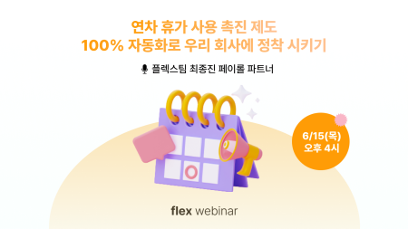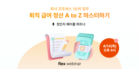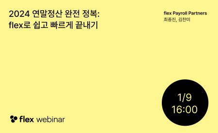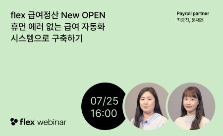 [flex webinar] 모든 급여를 One-stop으로 해결하는 flex 페이롤을 만나보세요세션2022. 10. 19비효율적인 반복 업무와 휴먼 에러에서 벗어나는 방법을 알려드릴게요.