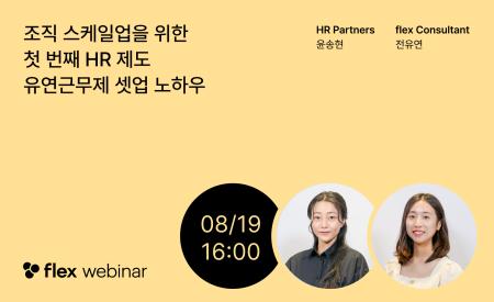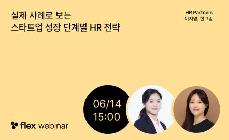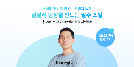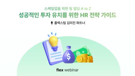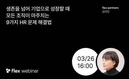 [flex webinar] 띵스플로우의 HR 방정식: 조직 스케일업에서 해결해야 할 4가지 성장통세션2023. 3. 27빠른 속도로 성장할 때, 리더가 놓치면 안 되는 HR 운영 원칙은?