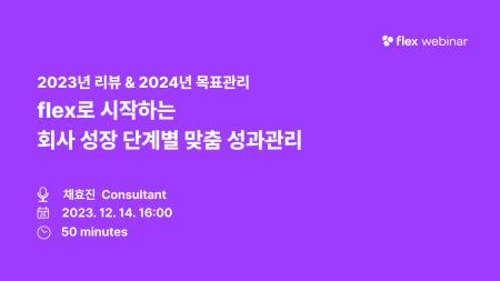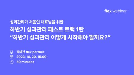[flex webinar] 하반기 성과관리 셋업 패스트 트랙 2탄 '목표-리뷰-원온원'사이클로 무한 성장 동력 만들기세션2023. 10. 19빠른 성과를 내고 싶다면 지속 가능한 성장 루틴을 만들어야 합니다.