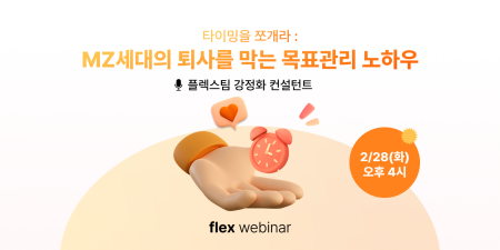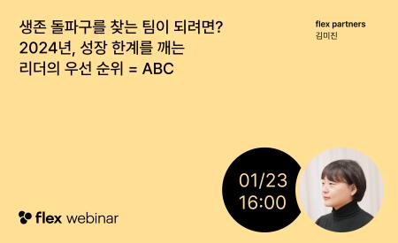 [flex webinar] 앞만 보는 조직에 성장은 없다: 최고의 팀이 되는 회고와 피드백 루틴 만들기세션2023. 3. 14개인과 회사의 성장을 함께 만드는 프로세스는 어떻게 만들 수 있을까?