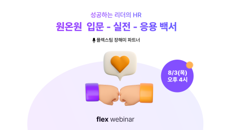 [flex webinar] 성과관리 Case Study: 사례로 풀어보는 성과관리 문제 해법 세션세션2024. 6. 11책에 나오지 않는 현장의 성과관리 케이스 사례를 만나보세요.