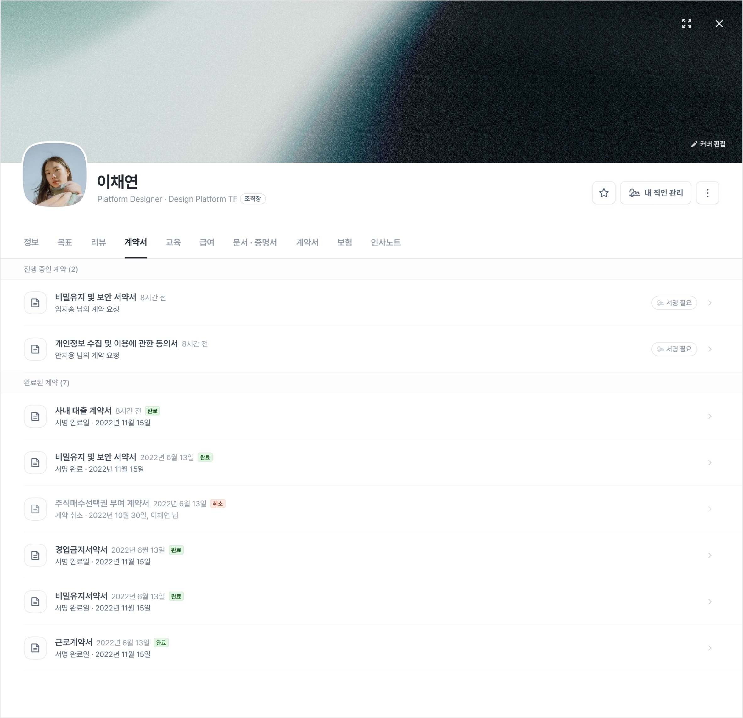 그리고 계약이 완료되면 구성원 정보로 바로 업데이트할 수 있죠.