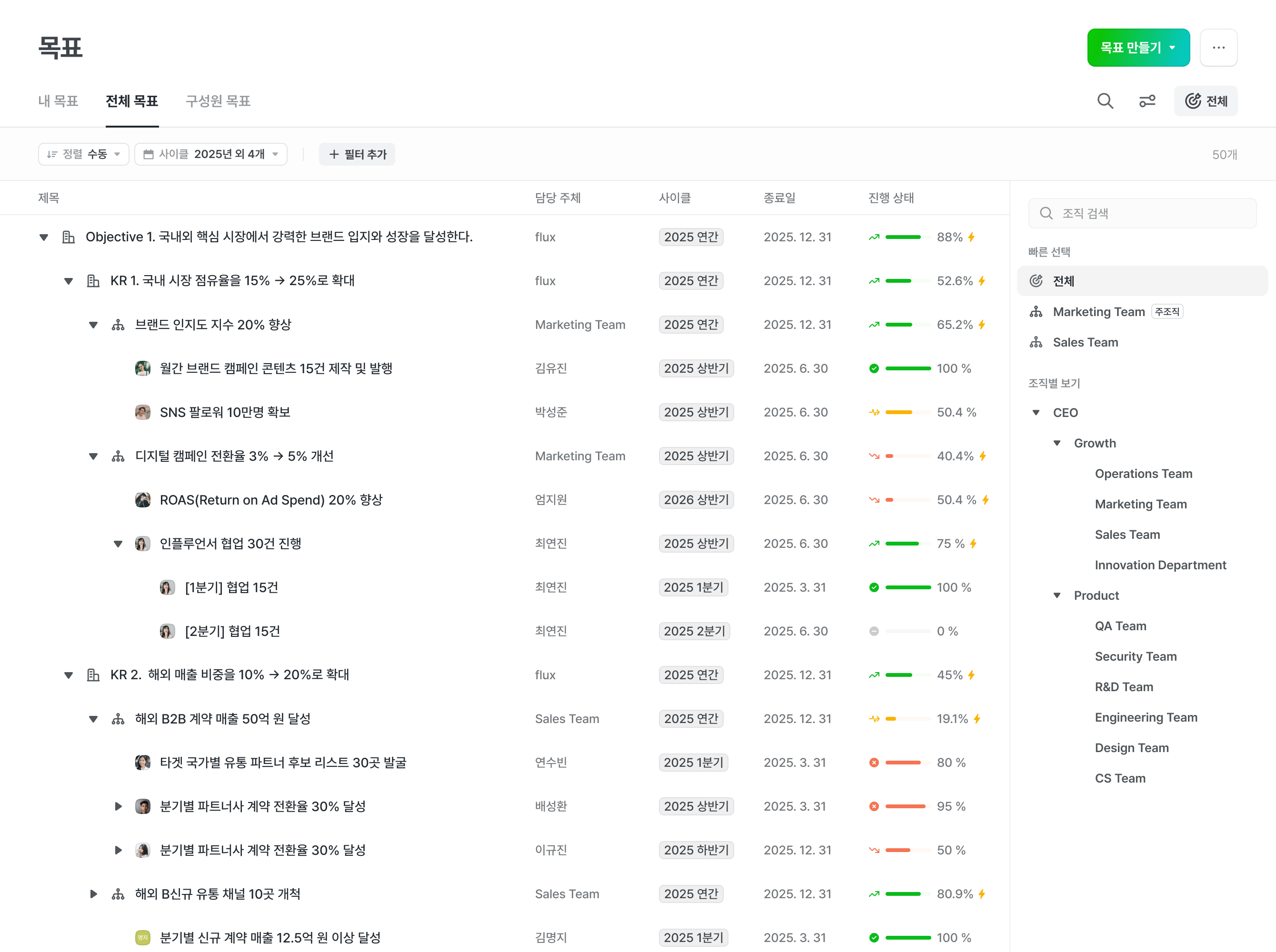 저희 회사는 조직 변경이 잦아, 목표를 일관되게 관리하기 어려운데 괜찮을까요?