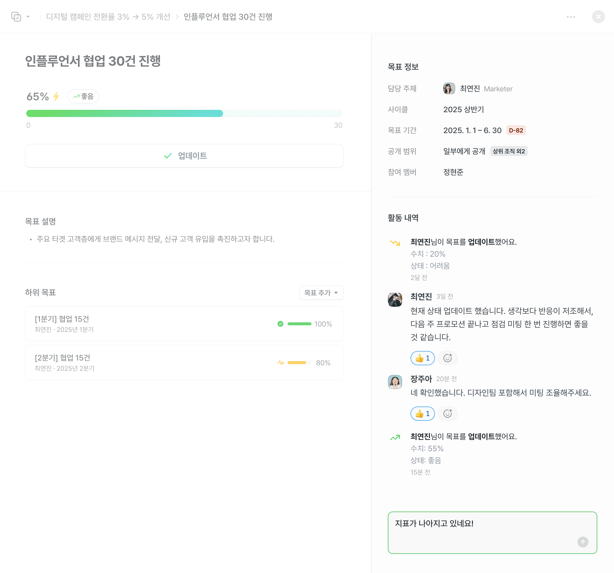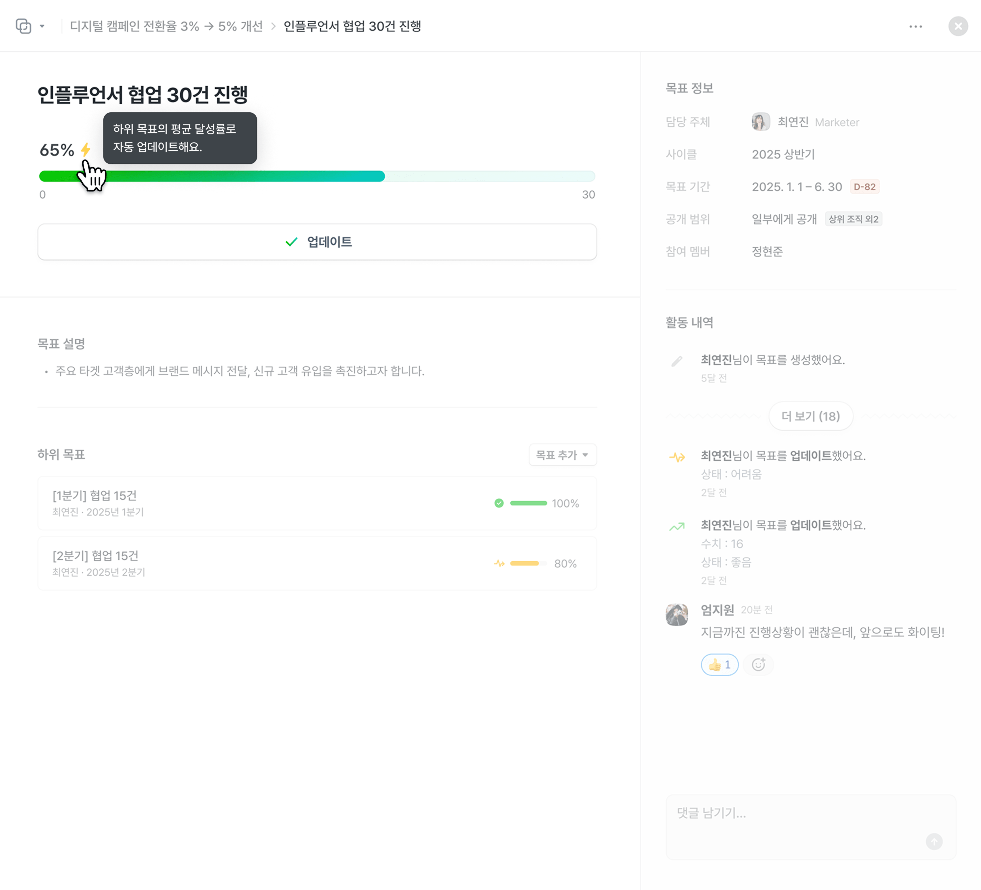 목표에 대한 합의를 유도하고 상위 목표와의 정렬을 강화할 수 있어요.