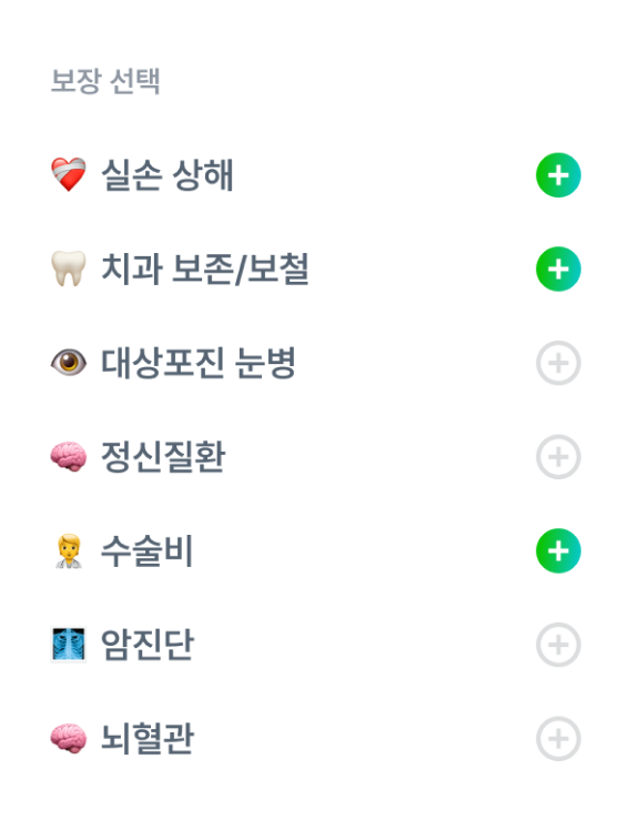 치과 치료부터 가족 정신질환, 대상포진 등 다양한 항목을 포괄하는