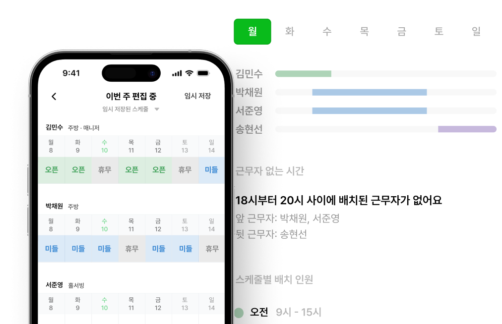 "직원들 요청에 맞춰서 스케줄 바꿔주는게 너무 번거로워요."