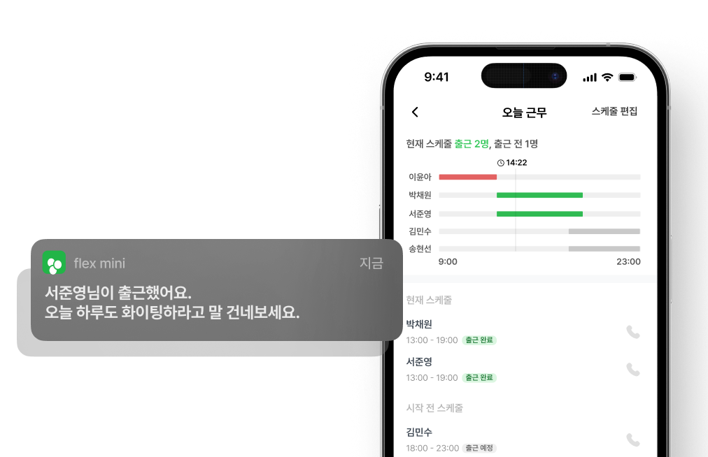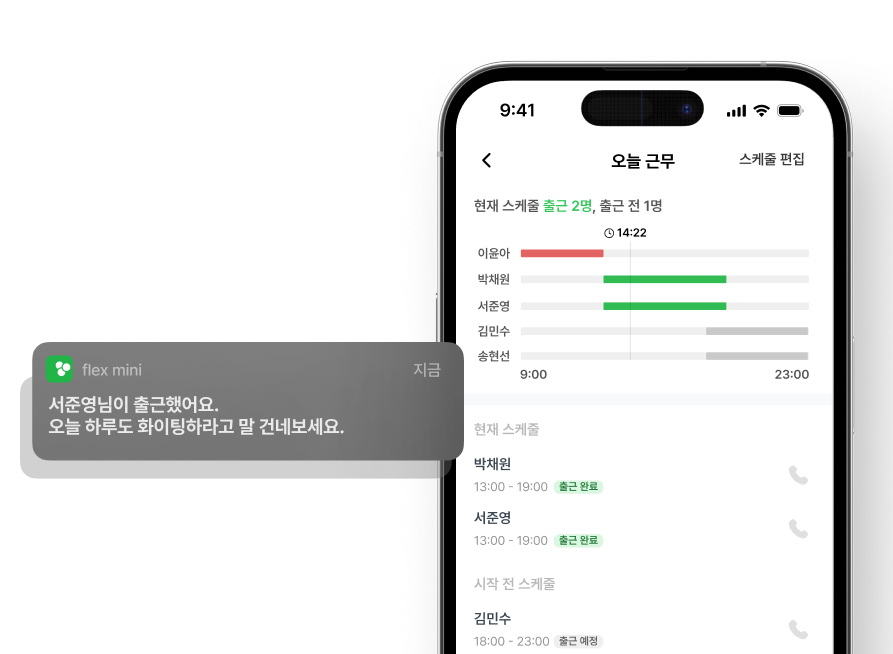 노트, 엑셀, 계산기 필요없이 직원관리 모바일 앱 하나로 매장 스케줄 관리, 출퇴근 확인, 급여 계산을 손쉽게 해결합니다.