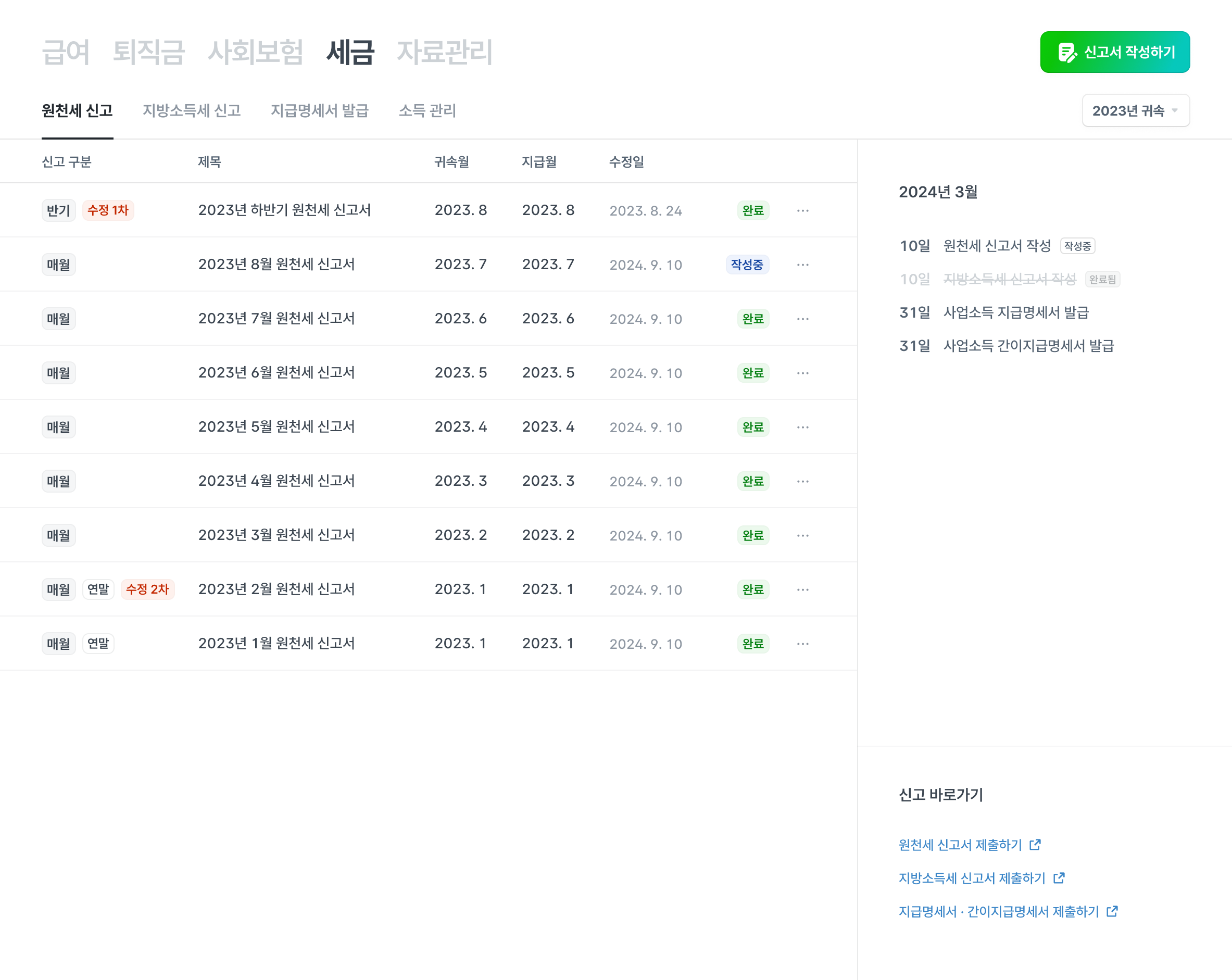 - 연간 원천대사 지원 및 원천세 수정신고 (연간 6회)