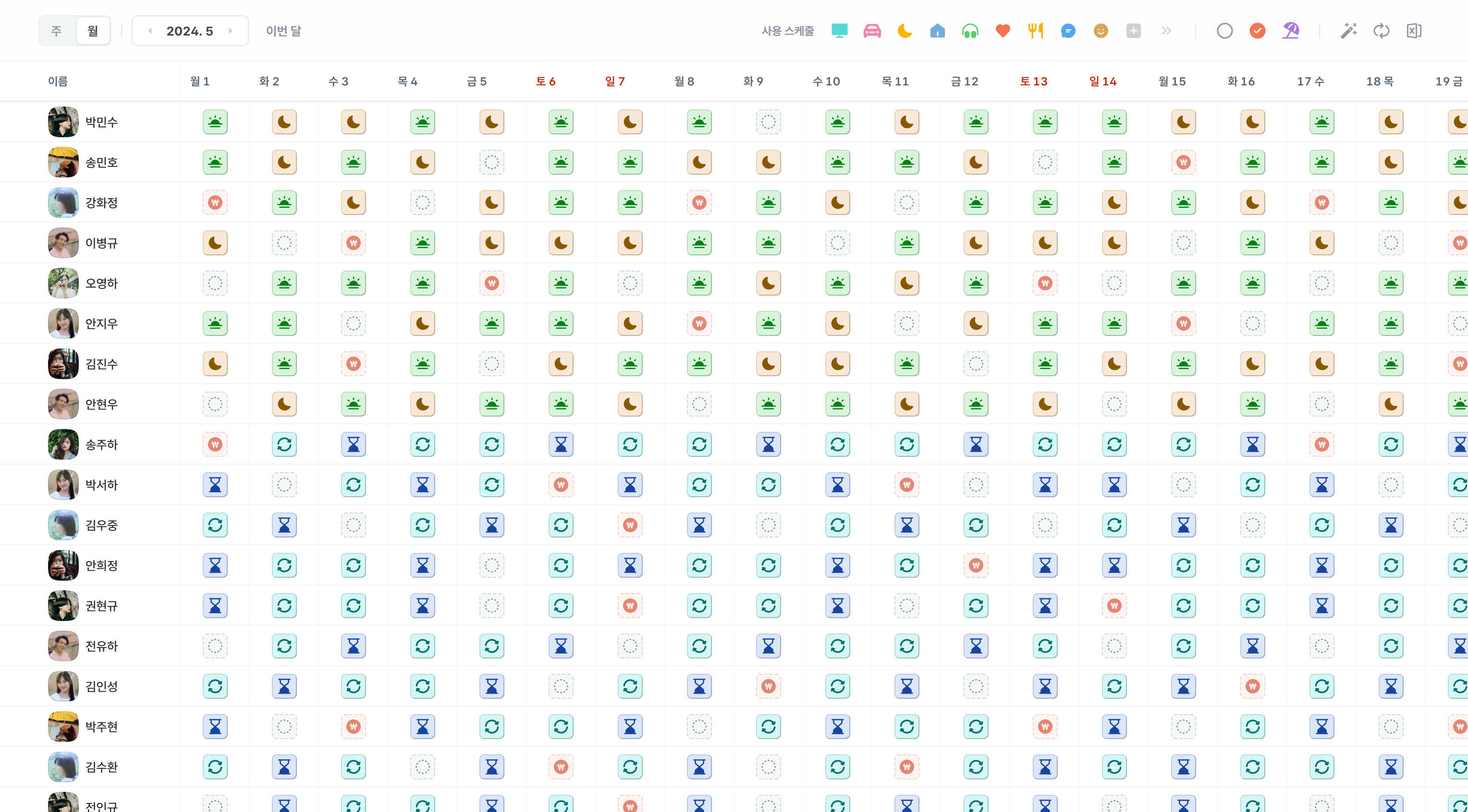 구성원의 근무 스케줄 및 휴가 사용 내역 등