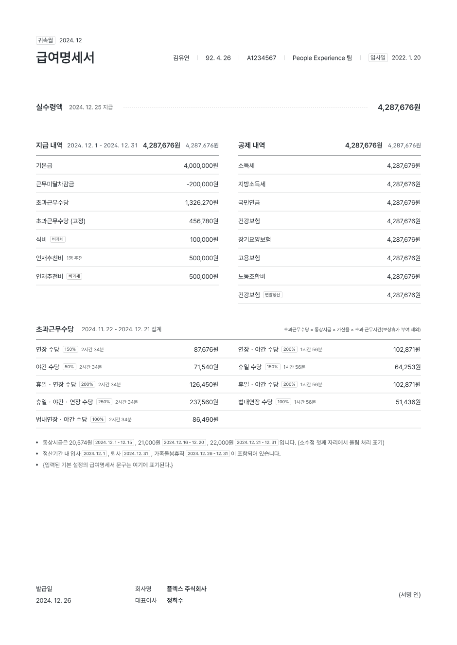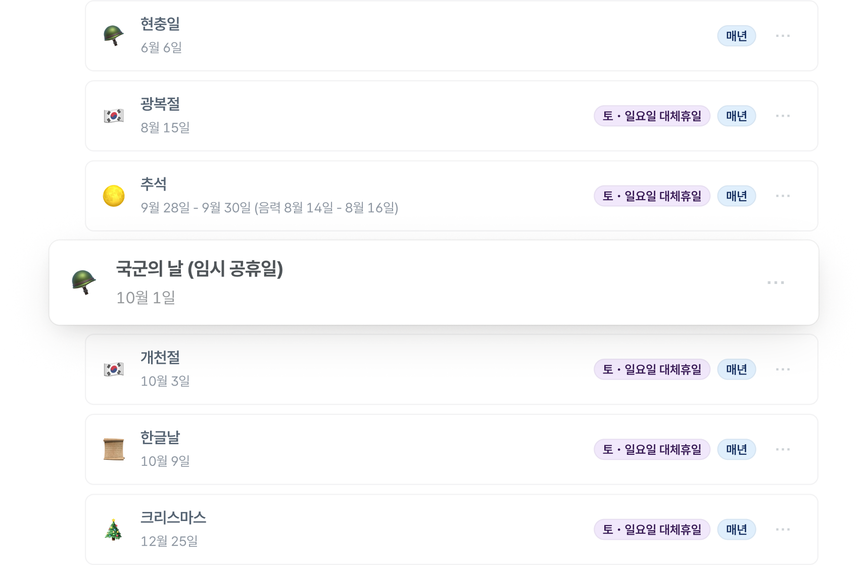 법령해석 변경이나 임시공휴일 지정 등 변경사항 발생 시 자동으로 곧바로 대응돼요.