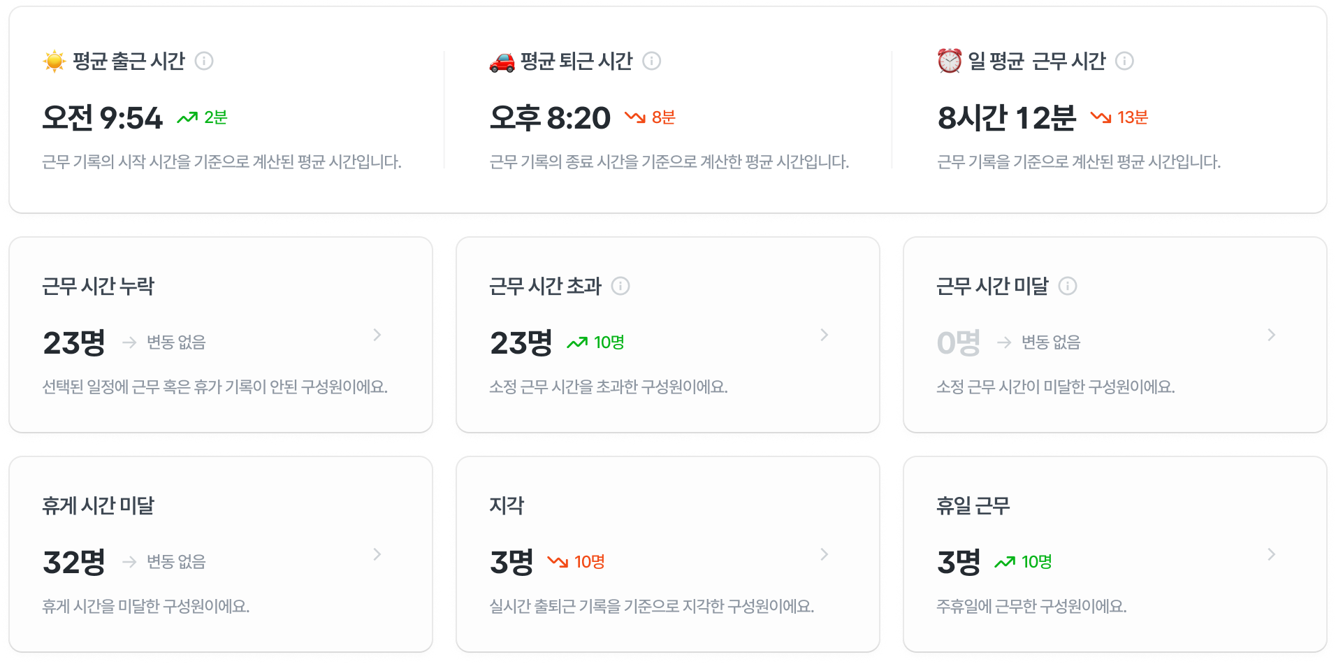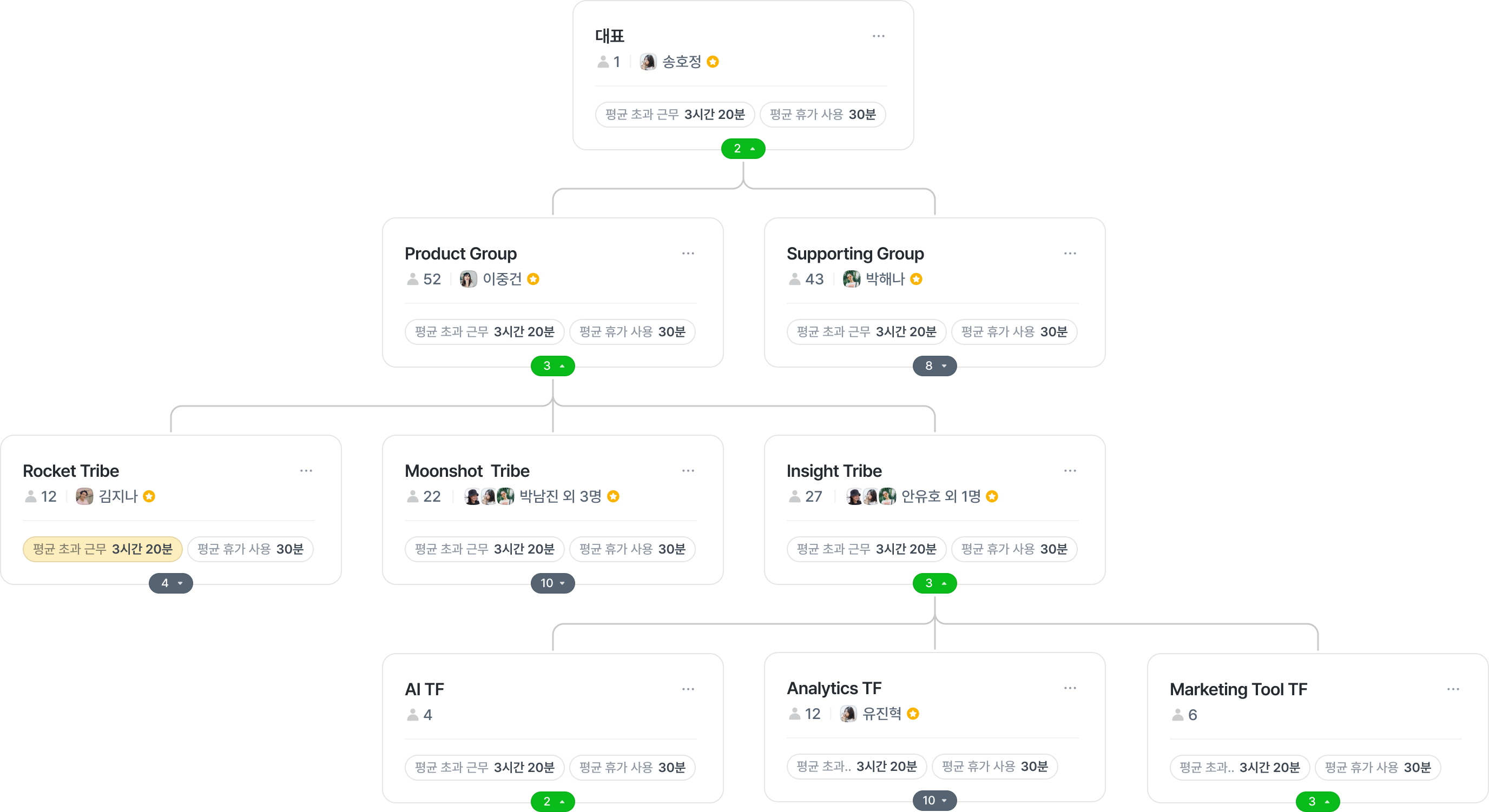 구성원분들의 주기별 근무 기록을 보면서 업무가 과한 경우는 없는지, 번아웃이 오지 않도록 도와드려야 할 분은 없는지 트래킹할 수 있어서 만족하면서 사용하고 있어요.