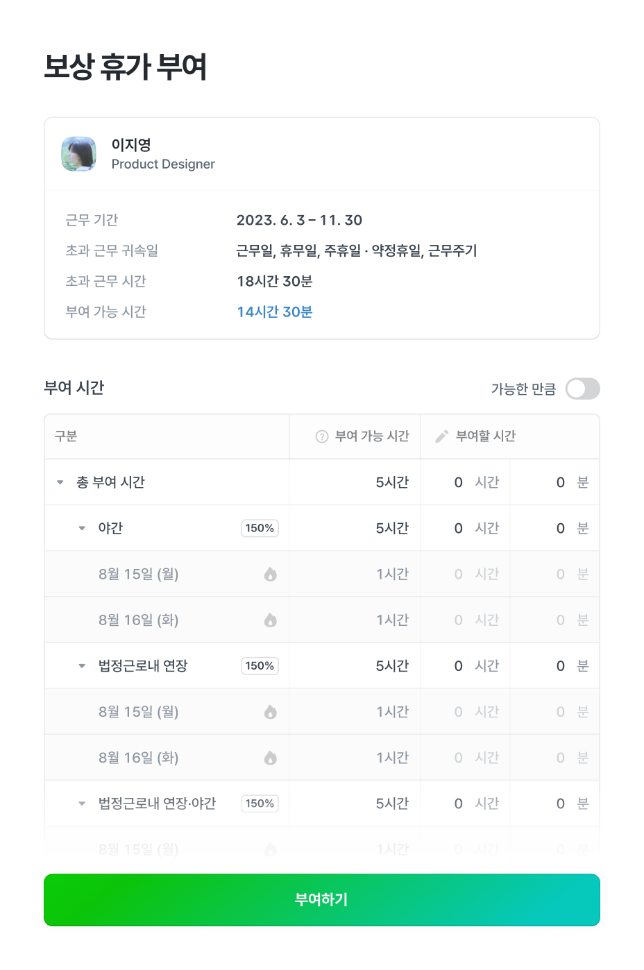 초과 근무를 보상하는 방식도 우리 회사에 맞게.