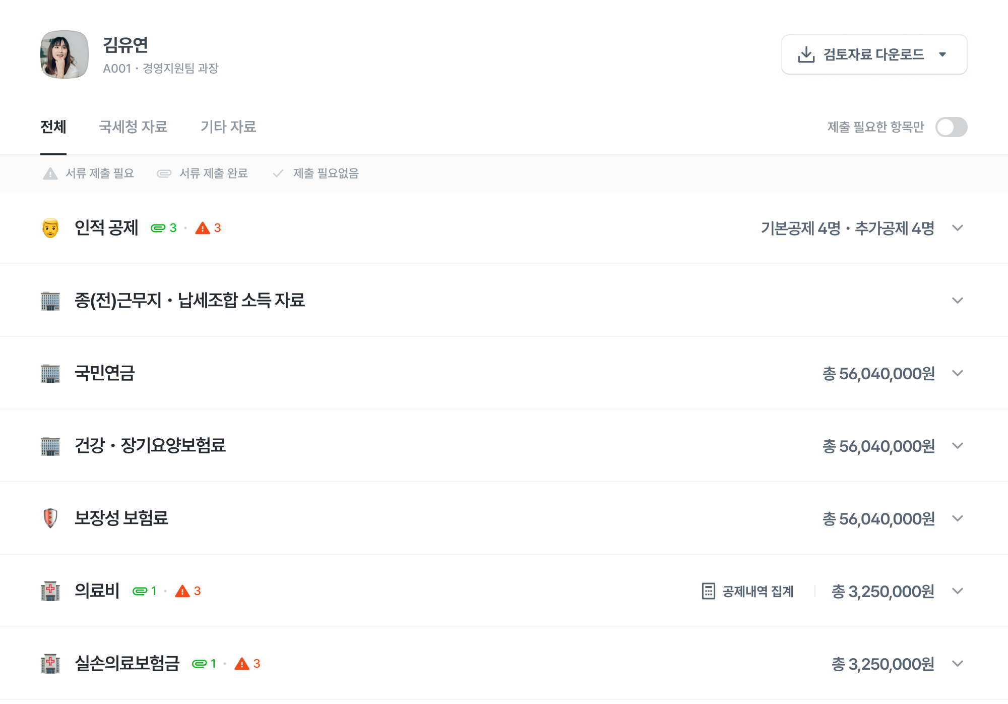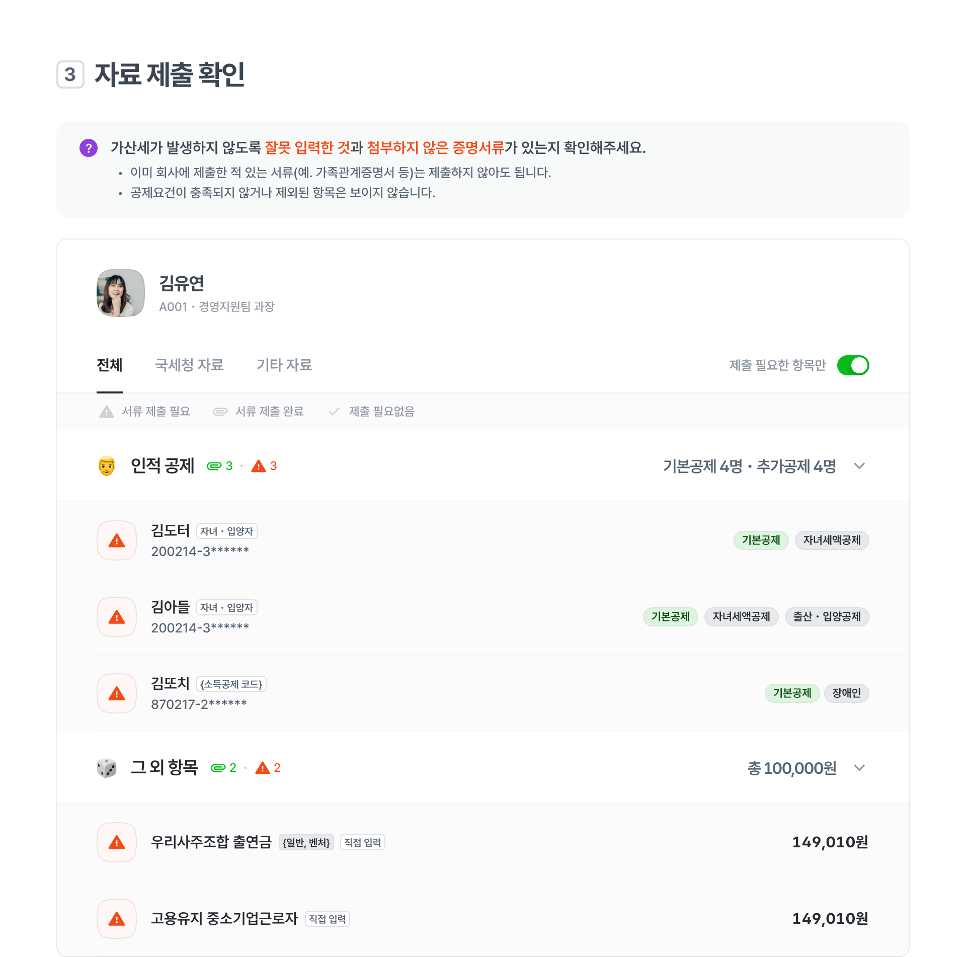 자주 실수하는 공제 신청 항목을 자동 검토하여, 초보자도 쉽게 연말정산을 수행하고 업무 시간을 절감할 수 있어요.
