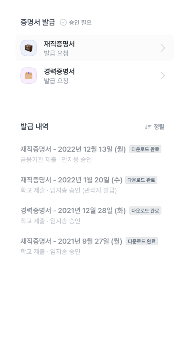 요청하고 기다리는 시간이 없어져요. 필요하면 발급 승인 설정도 가능하죠.