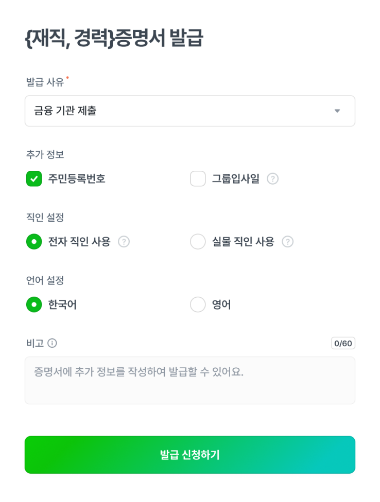 재직, 경력 증명서, 급여명세서 등 필요한 서류는 구성원 스스로 발급 받아