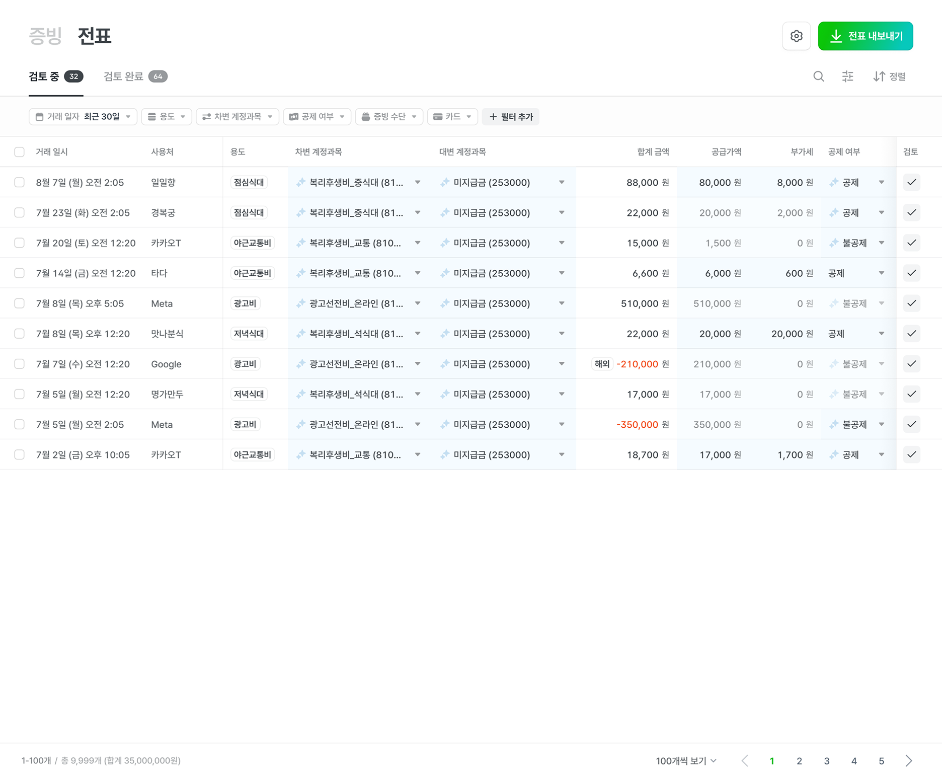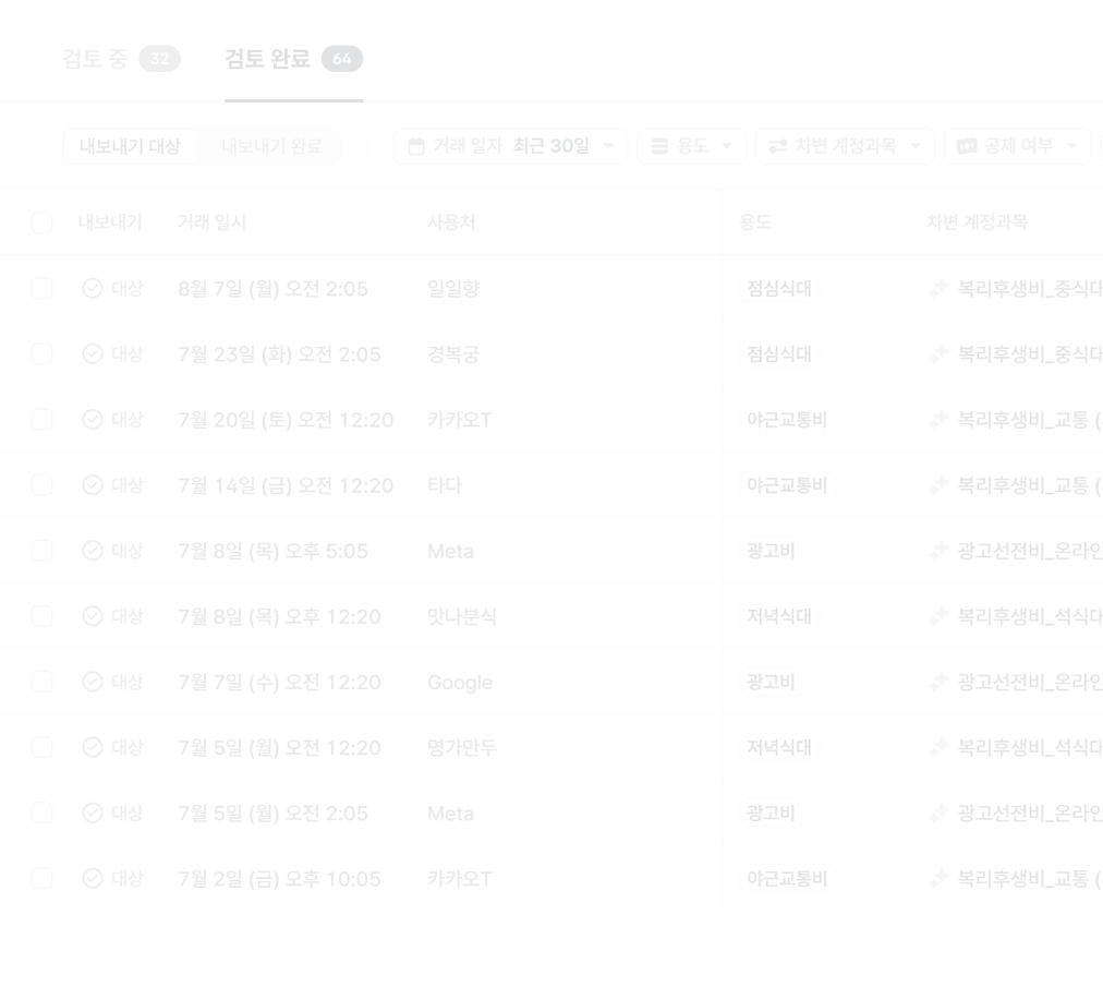 설정된 기준에 따라 자동 입력된 계정과목이나 공제 여부를 검토하고 수정할 수 있어요.